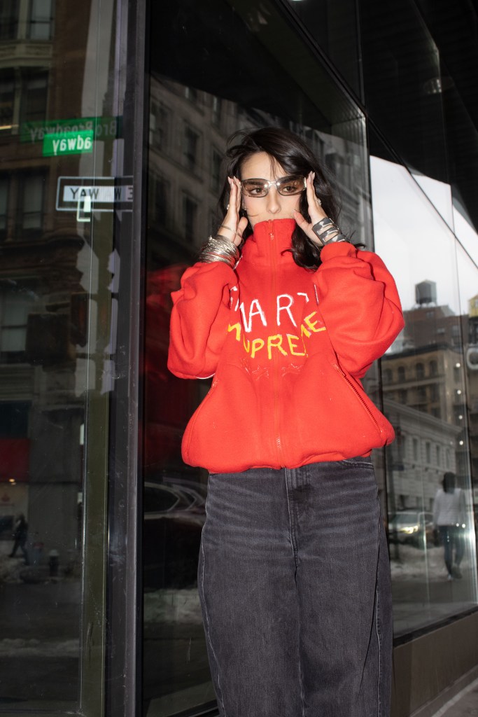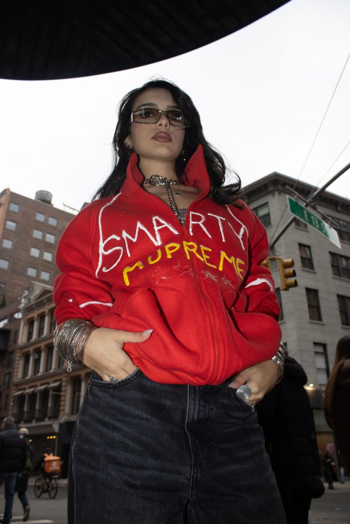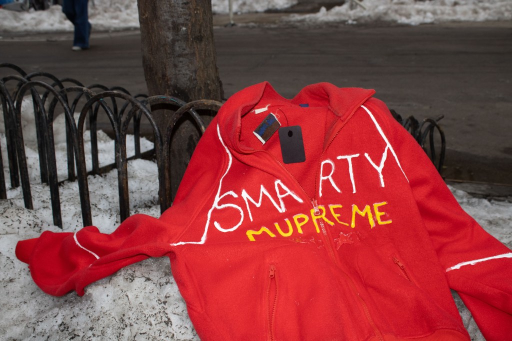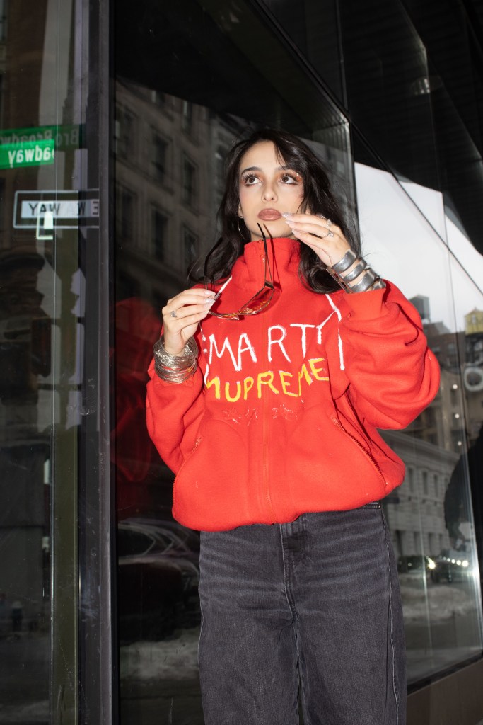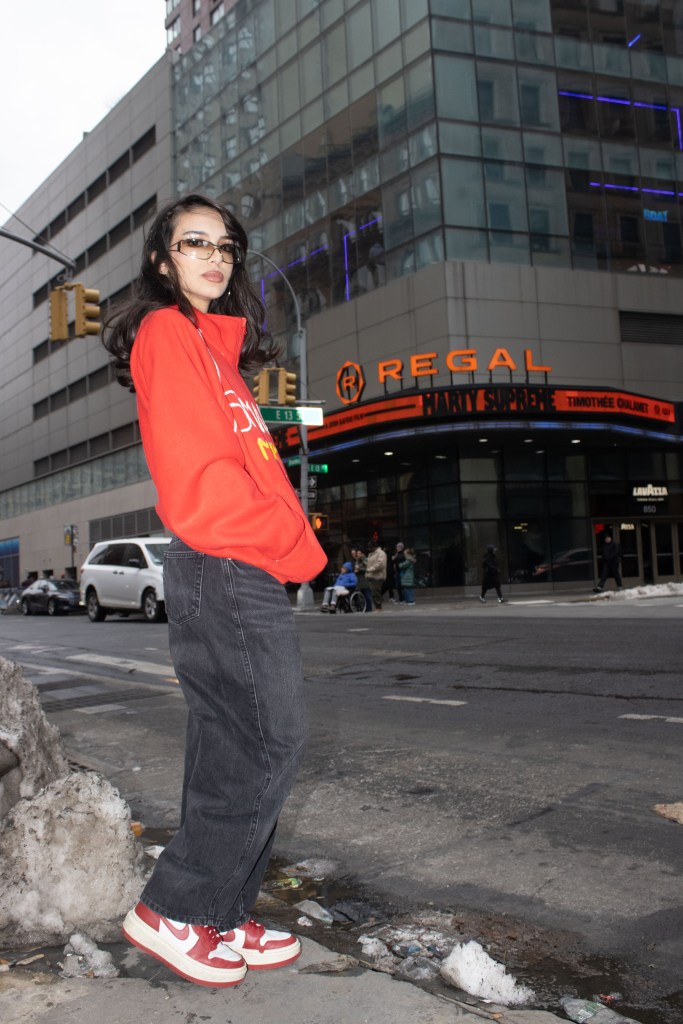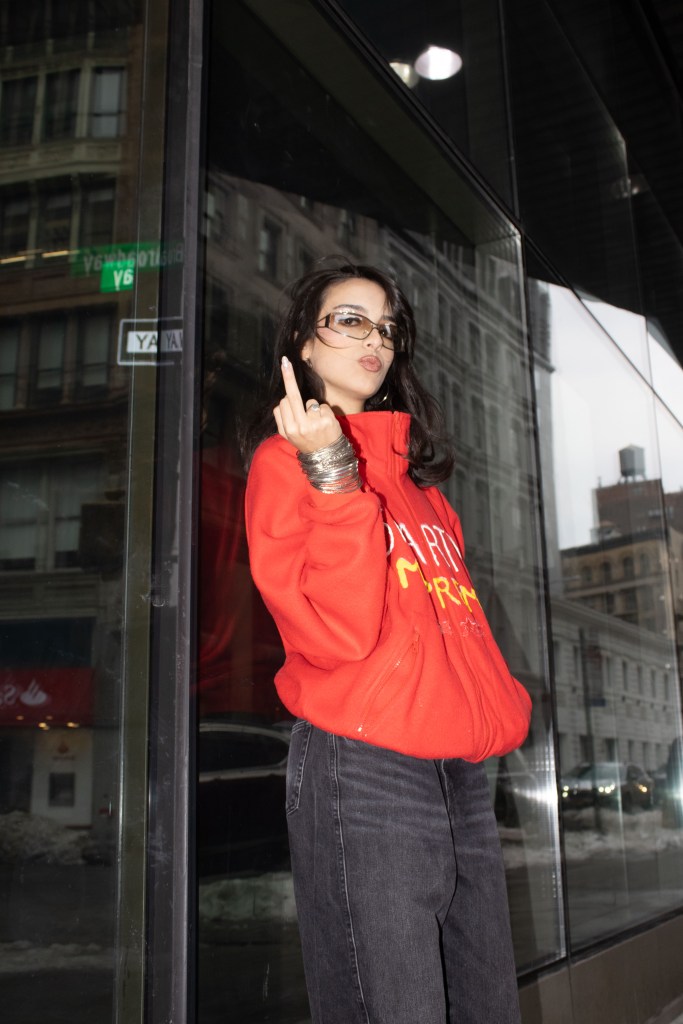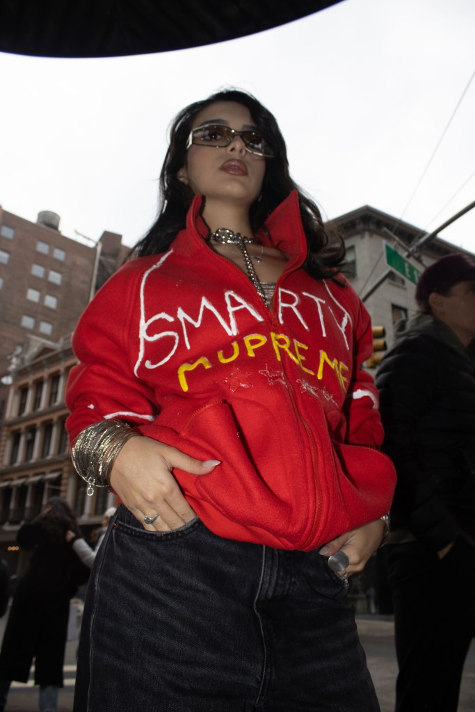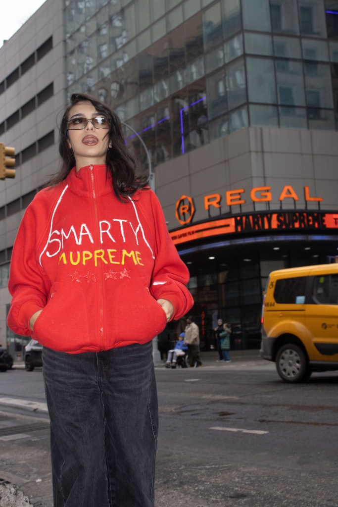 Fashion shoot for a satire project critiquing film merch and “hype culture”, Fashion & The Narrative class at Parsons NYC, Spring 2026.