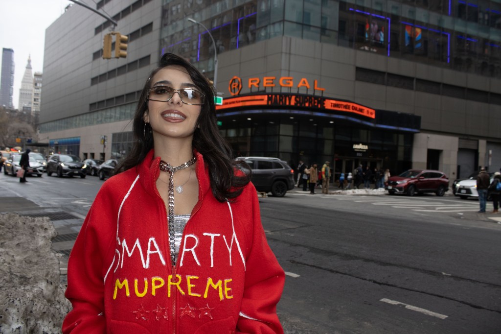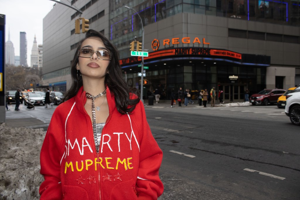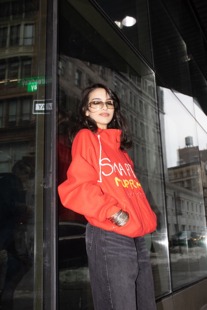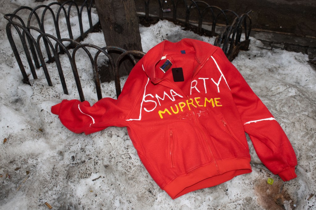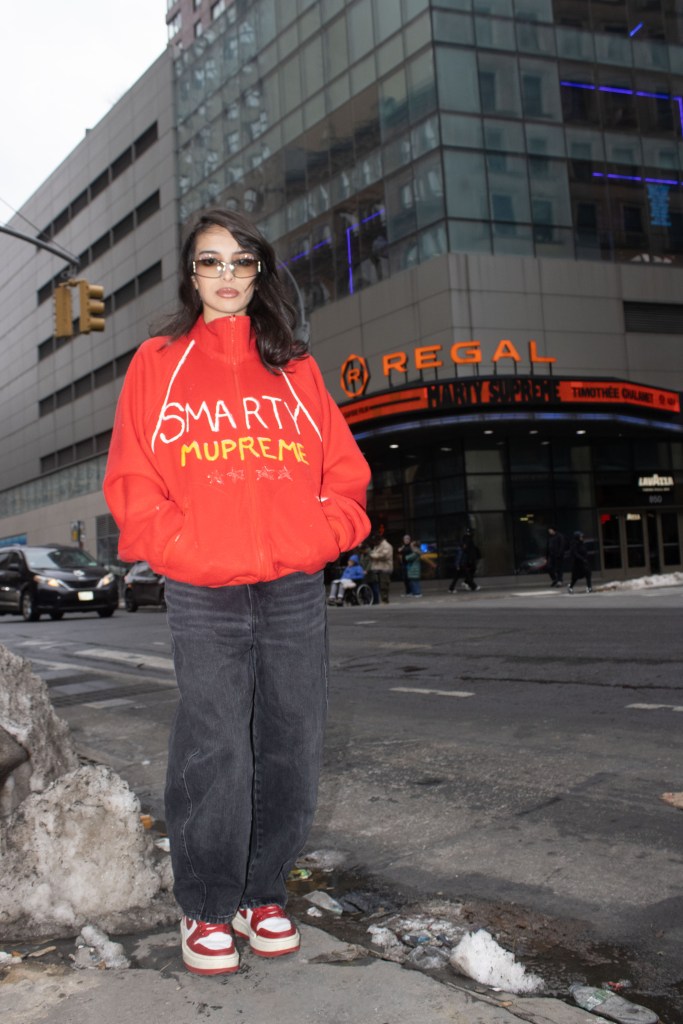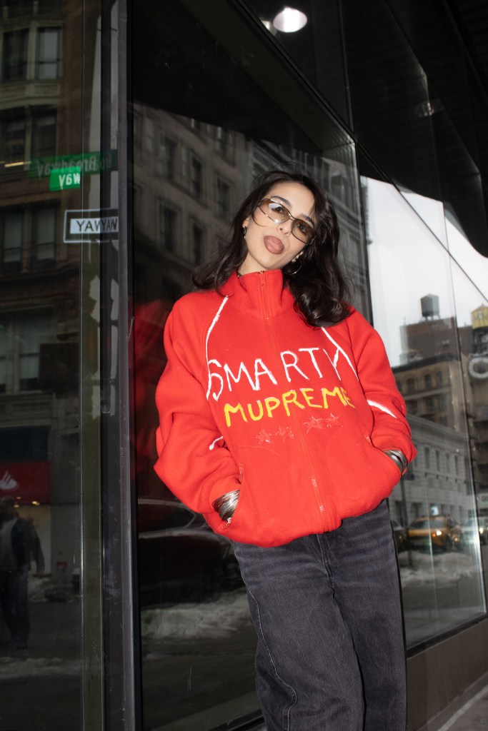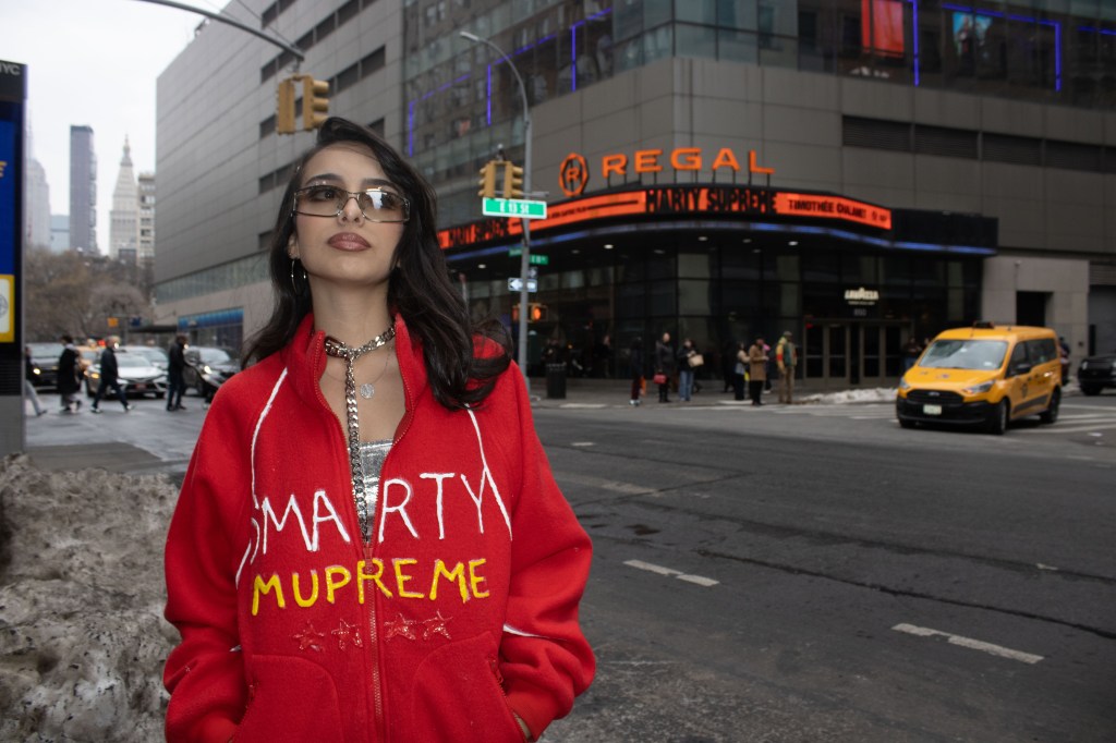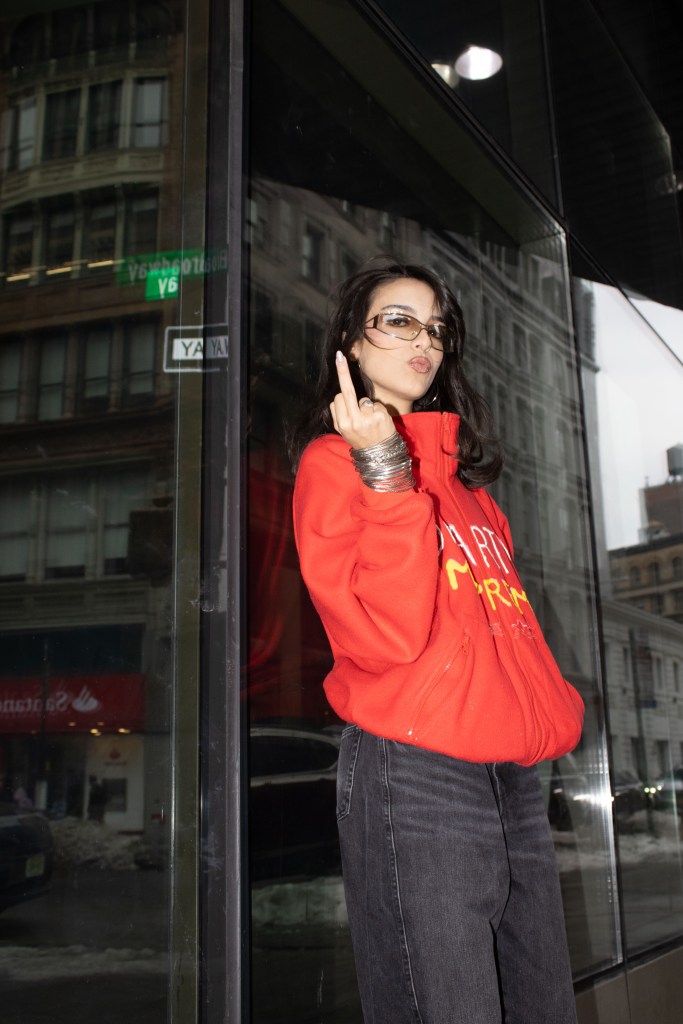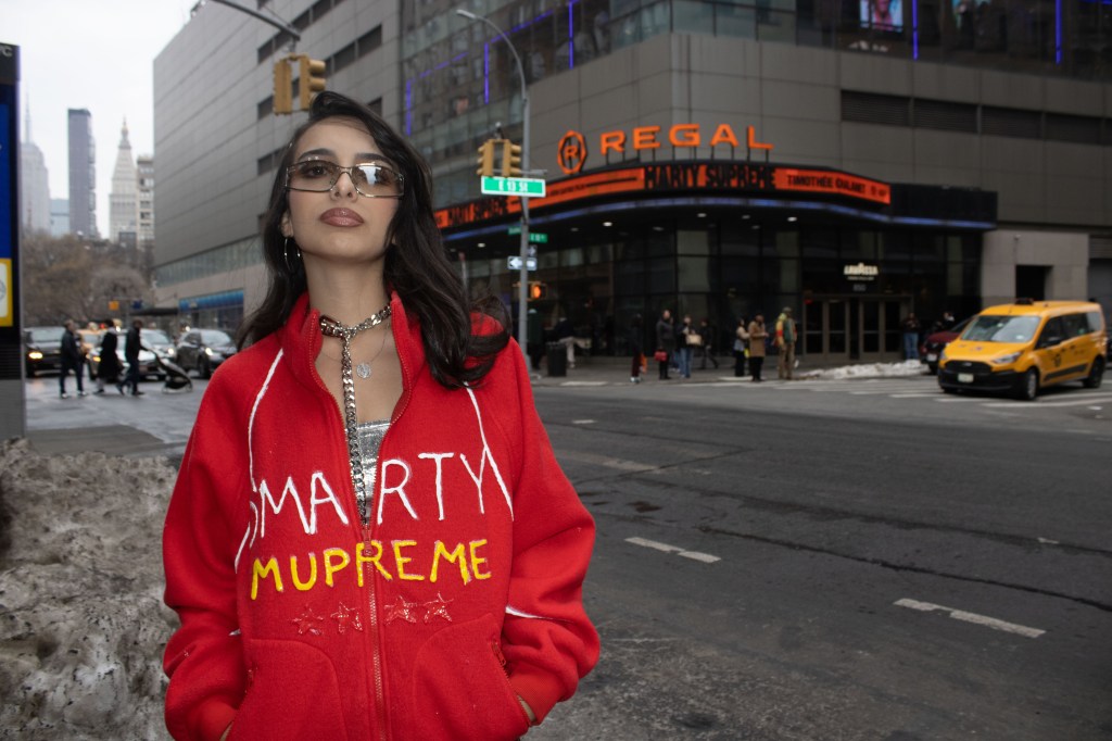 Fashion shoot for a satire project critiquing film merch and “hype culture”, Fashion & The Narrative class at Parsons NYC, Spring 2026.