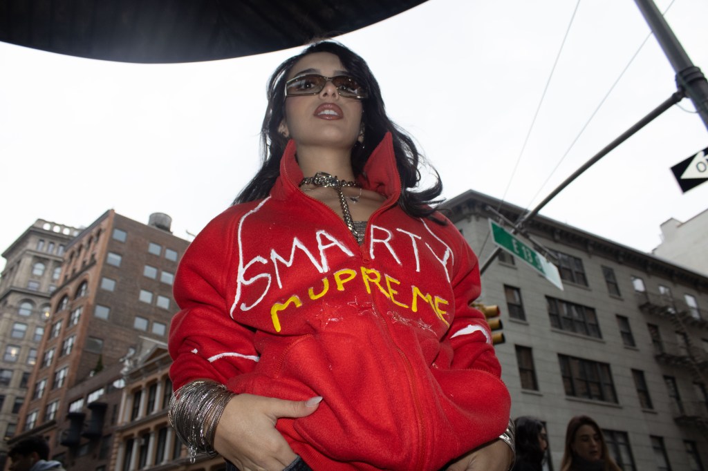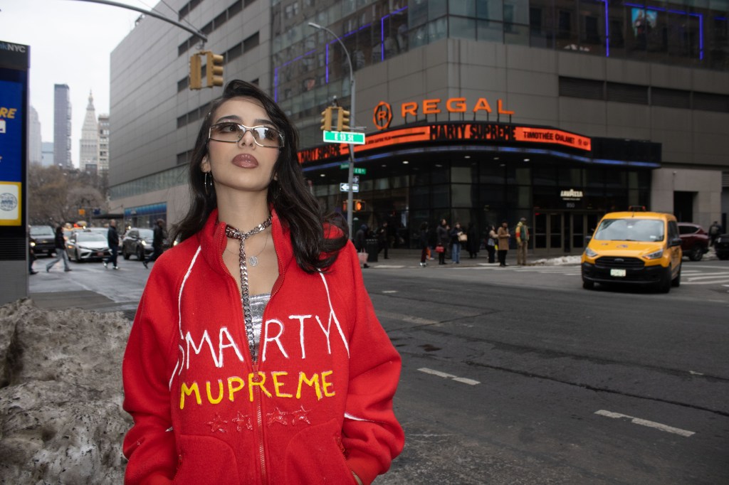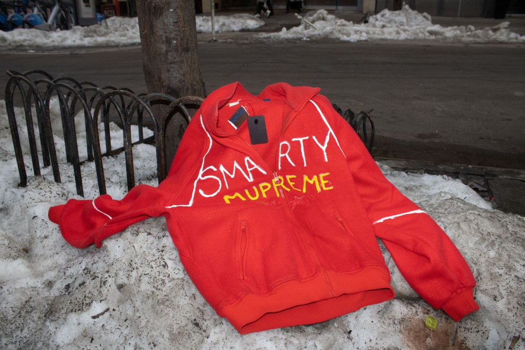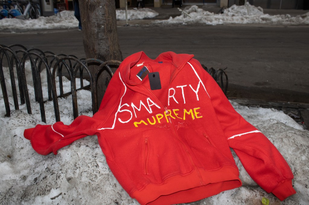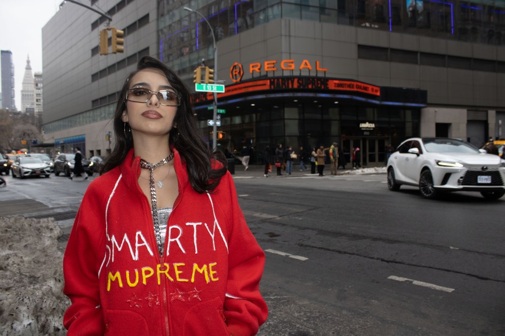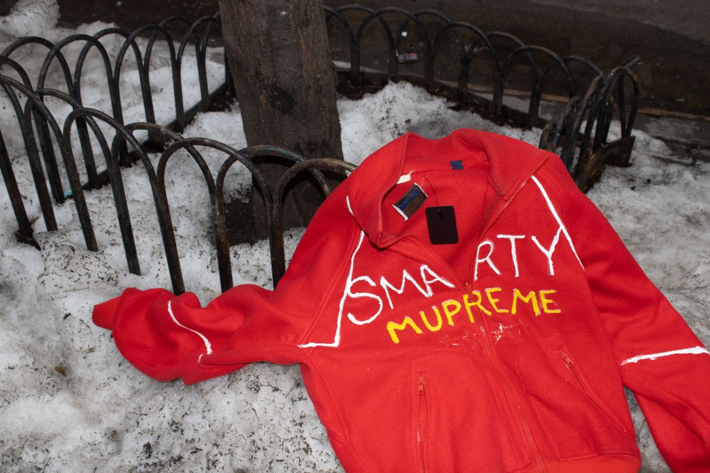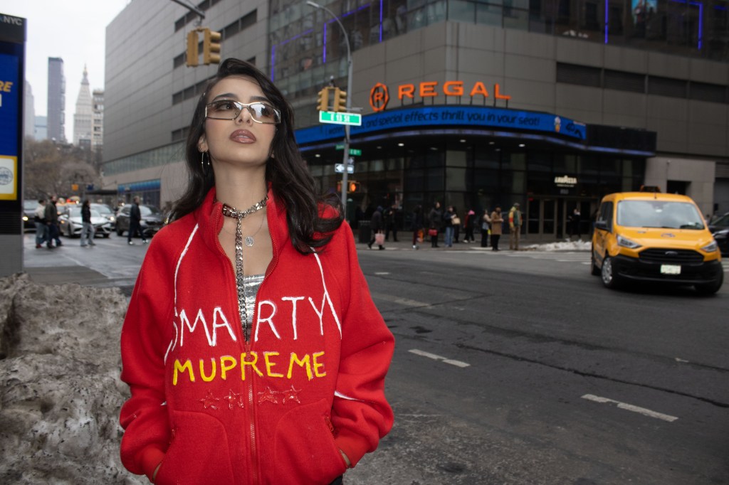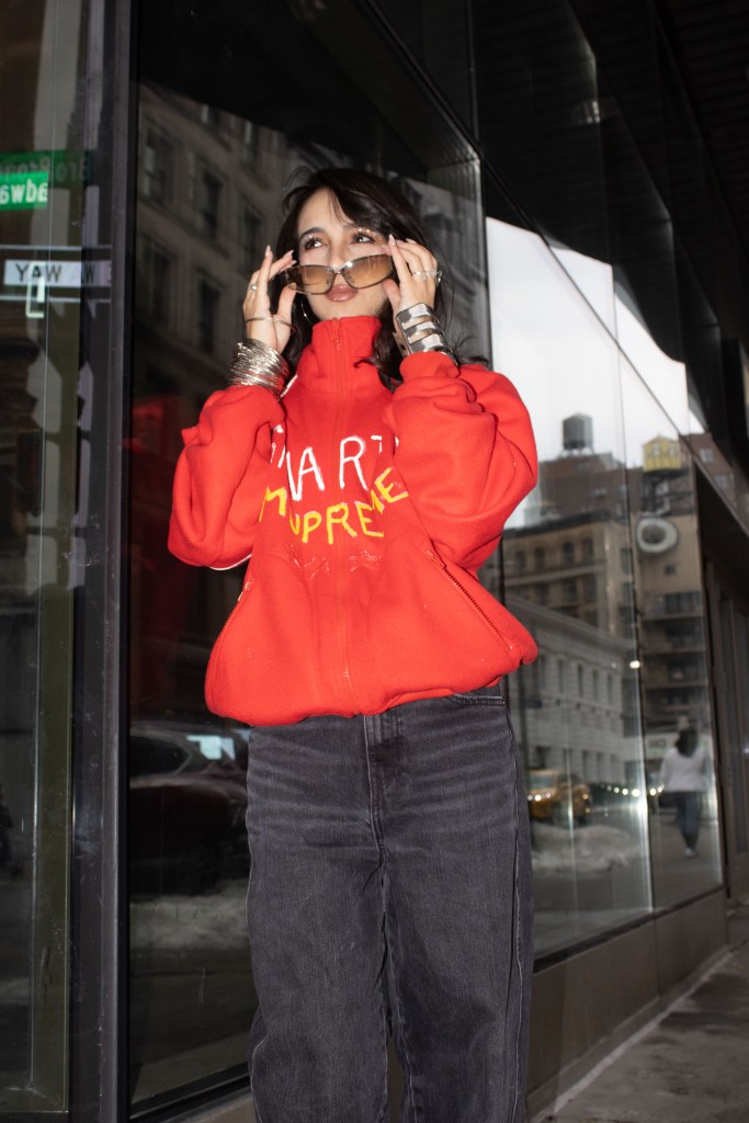Fashion shoot for a satire project critiquing film merch and “hype culture”, Fashion & The Narrative class at Parsons NYC, Spring 2026.